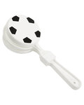 • Soccer-shaped plastic clappers featuring sport-themed stock art